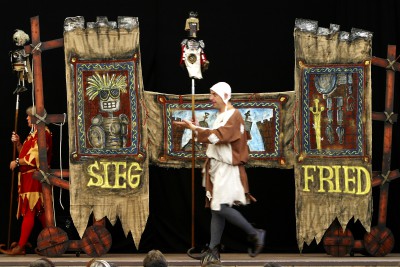 Ein sagenhaftes Blechspektakel erwartet Sie in einer mittelalterlichen Gaukler- und Narrenwelt. Vor Ihrem Auge spielt sich das Leben von Siegfried, dem blonden Recken, von seiner Geburt bis zu seinem überraschenden Tode ab. Doch wird Ihnen nicht die bekannte Mär des heldenhaften Edelmannes dargeboten, sondern Ihnen wird vorgeführt, „wie die Sache wirklich war“.